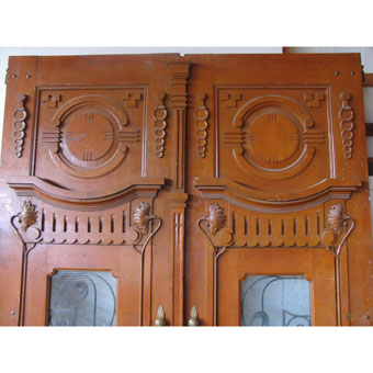 Stock Number: 21672Circa: 1930 Status: In StockDepth: 2 in.Width: 92 in.Height: 133 in. 2 Large Doors with 1 Smaller Walk-in Door.